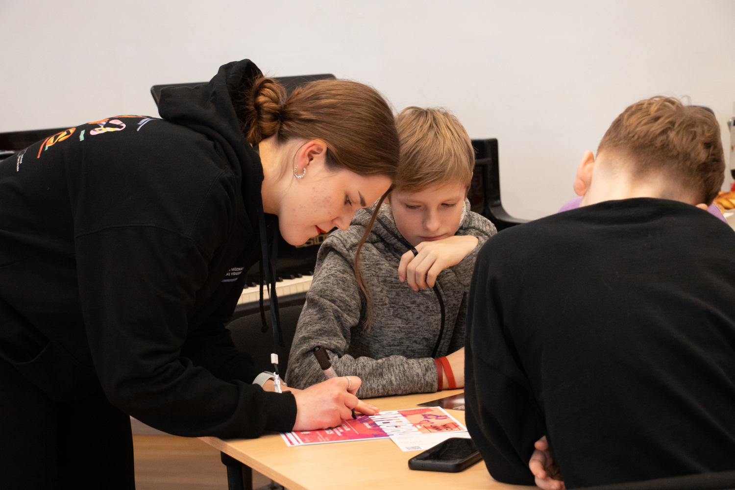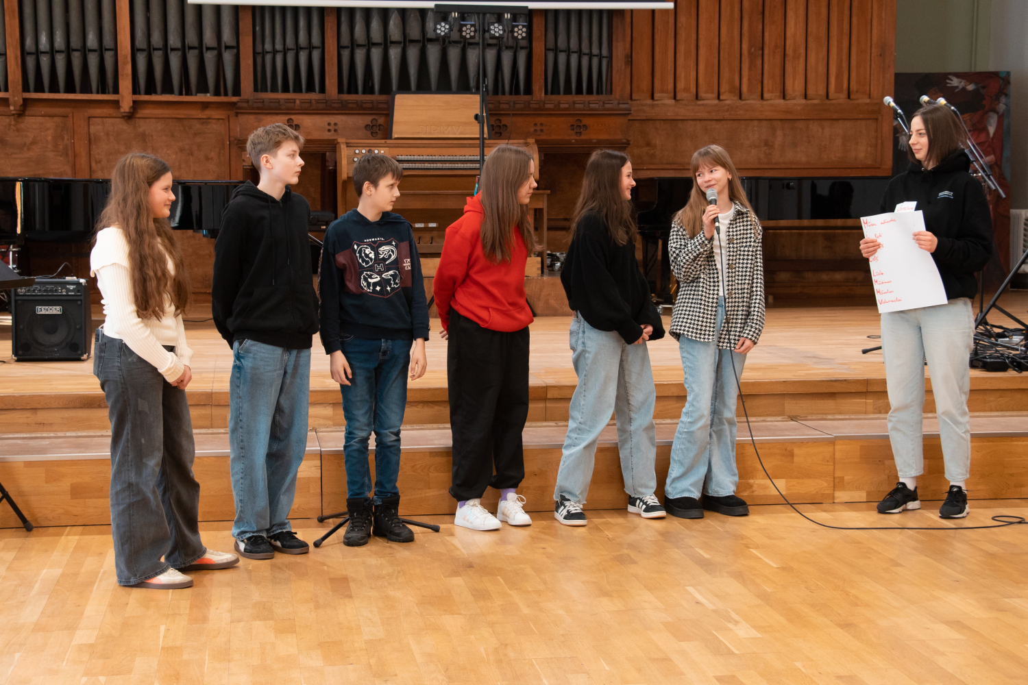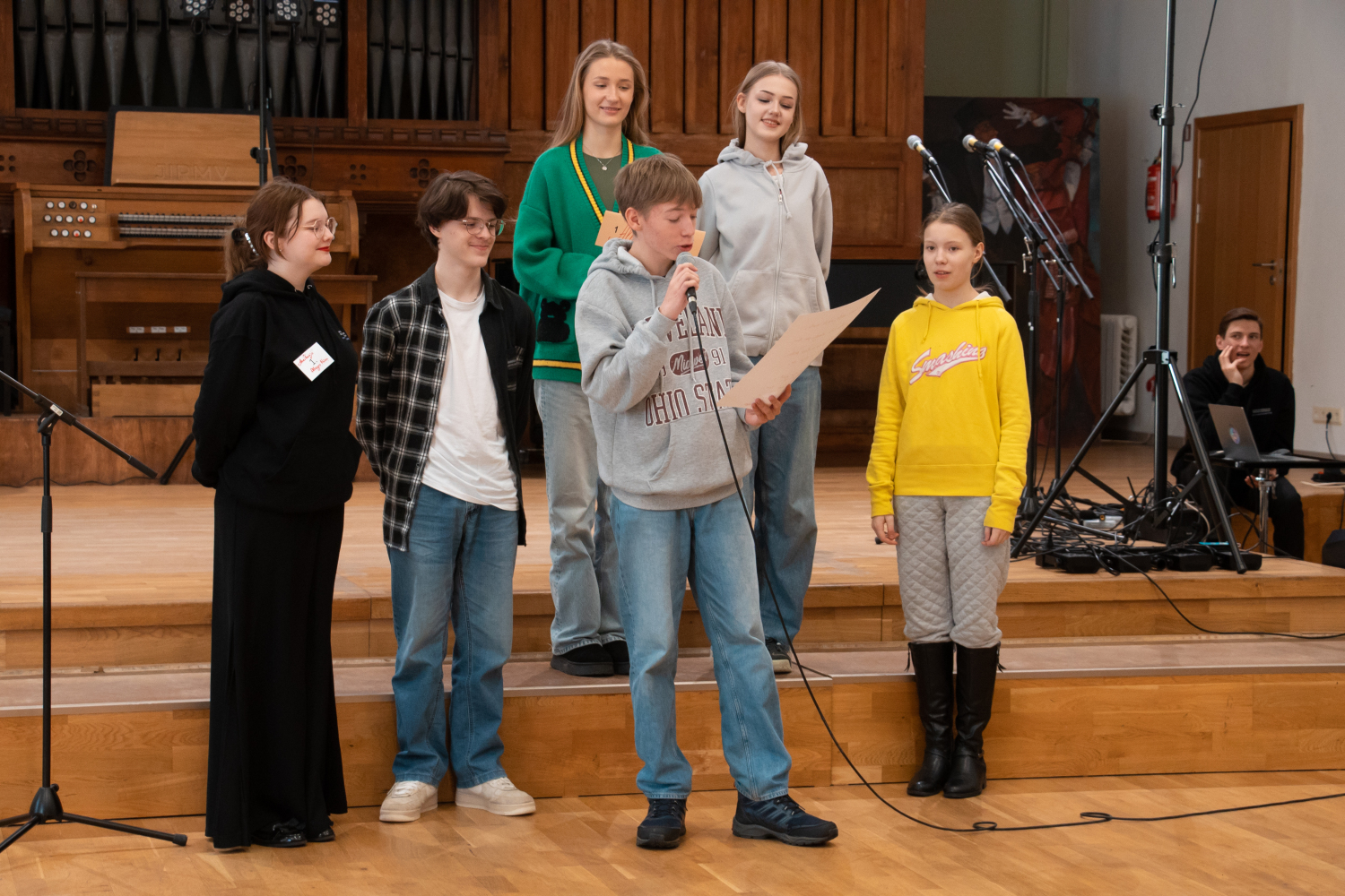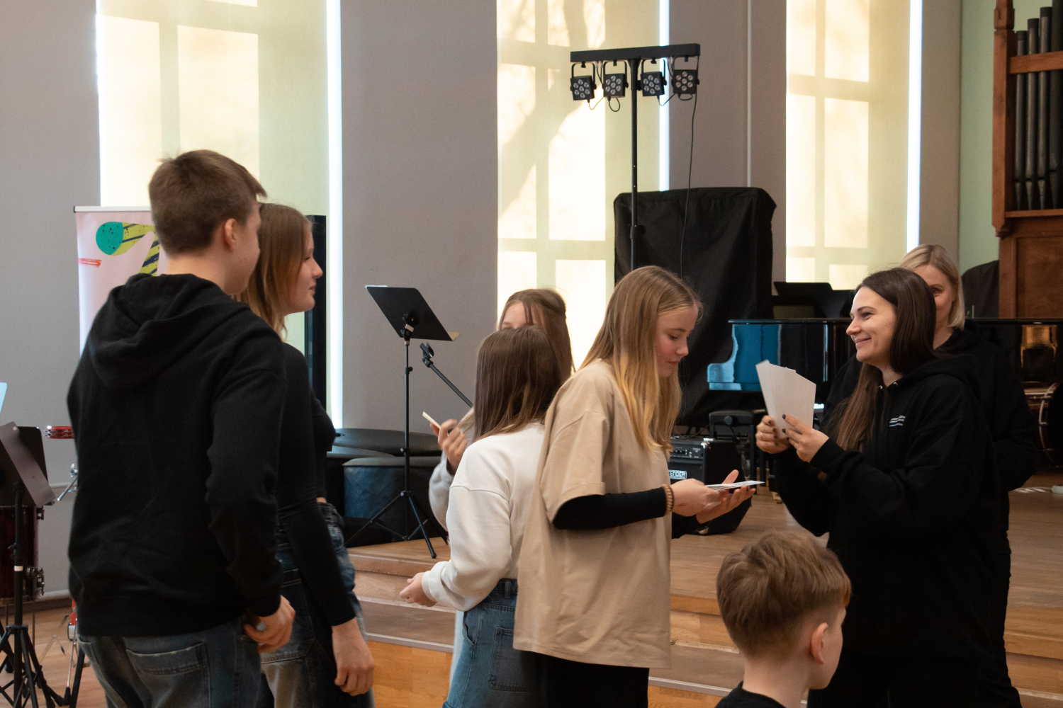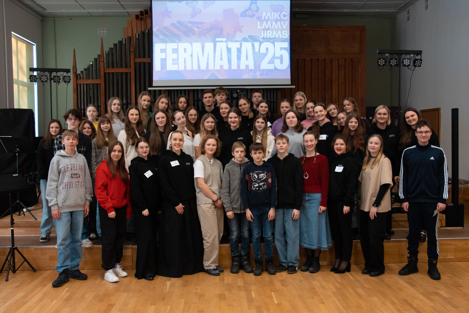 19.februāra pēcpusdienā MIKC LMMV Jāņa Ivanova Rēzeknes mūzikas skolas profesionālās ievirzes un sešu reģiona mūzikas un mākslas skolu izglītojamie viesojās pie mums, Mūzikas vidusskolā, lai, kā ierasts februārī, kopā interaktīvi, radoši un iedvesmojoši pavadītu laiku kopā ikgadējā reģiona skolu sadraudzības pasākumā FERMĀTA’25. Šogad pulcējām kopā vairāk nekā 40 jaunos mūziķus no Kārsavas Mūzikas un mākslas skolas, Gulbenes Mūzikas skolas, Varakļānu Mūzikas un mākslas skolas, Balvu Mūzikas skolas, Ludzas Mūzikas pamatskolas, Viļānu Mūzikas un mākslas skolas, kā arī mūsu pašu – JIRMS profesionālās ievirzes izglītības programmu audzēkņus. Pasākuma koncepts palicis nemainīgs – iepazīstināt pasākuma dalībniekus ar MIKC LMMV JIRMS un skolas sniegtajām iespējām, taču ar piedāvāto aktivitāšu klāstu nedaudz eksperimentējām. Kā rāda jauniešu atgriezeniskās saites aptaujas anketas atbilžu apkopojums, darījām pareizi!