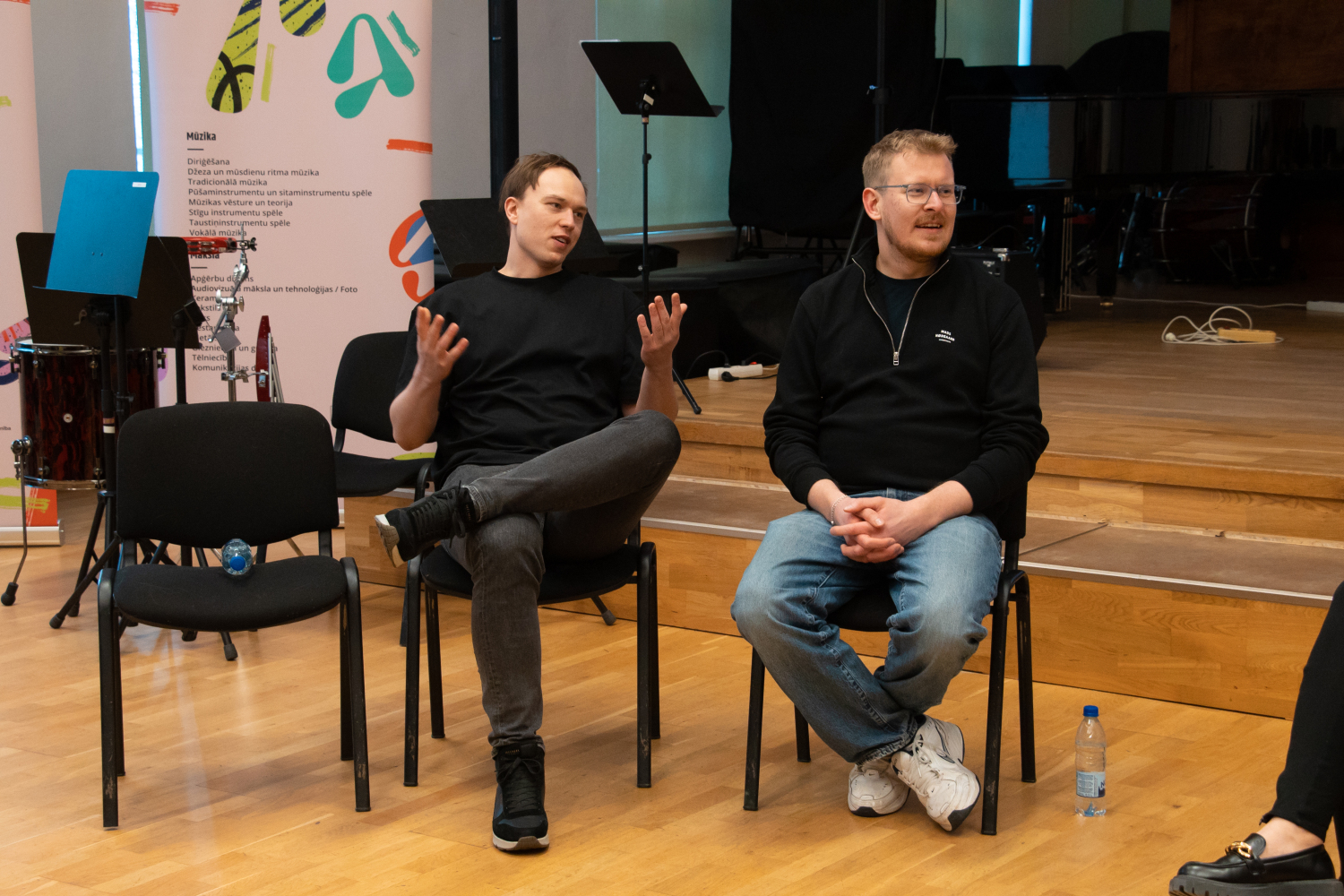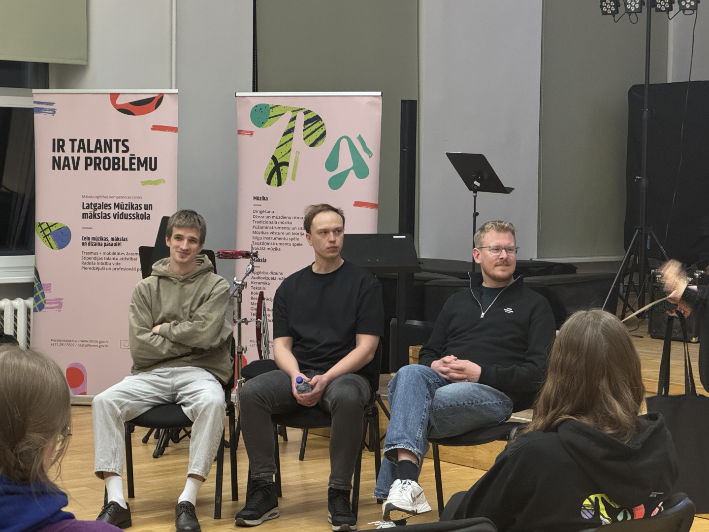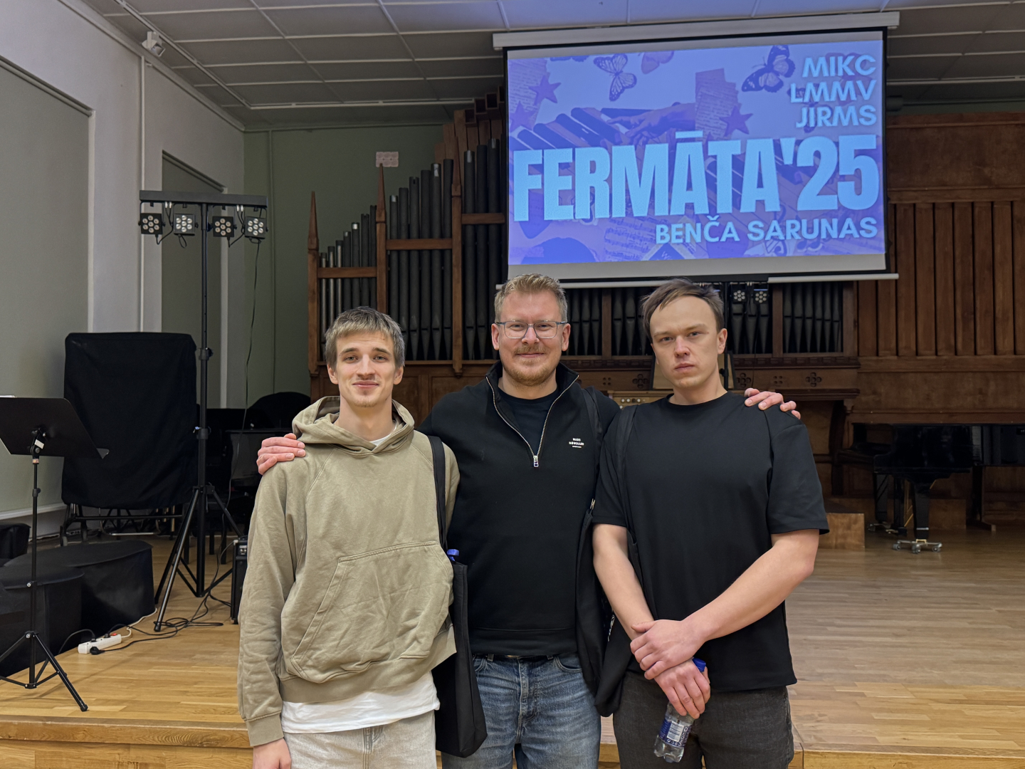 Vakaru turpinājām citādāk, nekā Fermātā ierasts, jo pēc uzdevumiem aicinājām klātesošos jauniešus un arī pedagogus uz Benča sarunām, kuras vadīja izglītības metodiķe Ilze Unzule. Dalībai sarunās piekrita trīs fantastiski un neticami iedvesmojoši JIRMS absolventi: Domeniks Slišāns, Mārcis Lipskis un Einārs Everss. Neizsakāmi pateicamies katram no sarunu varoņiem par dalīšanos savā skolas laika pieredzē, pārdomās par mūziķa karjeru, sajūtās un emocijās par savas dzīves laikā pieredzēto - uz skatuves un ne tikai. Paldies par iedvesmu turpmākajam darbam!