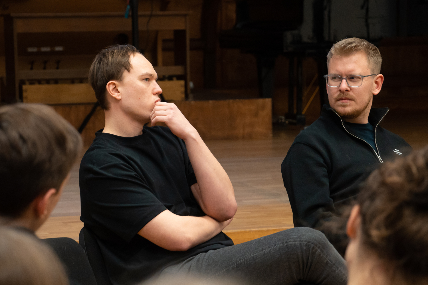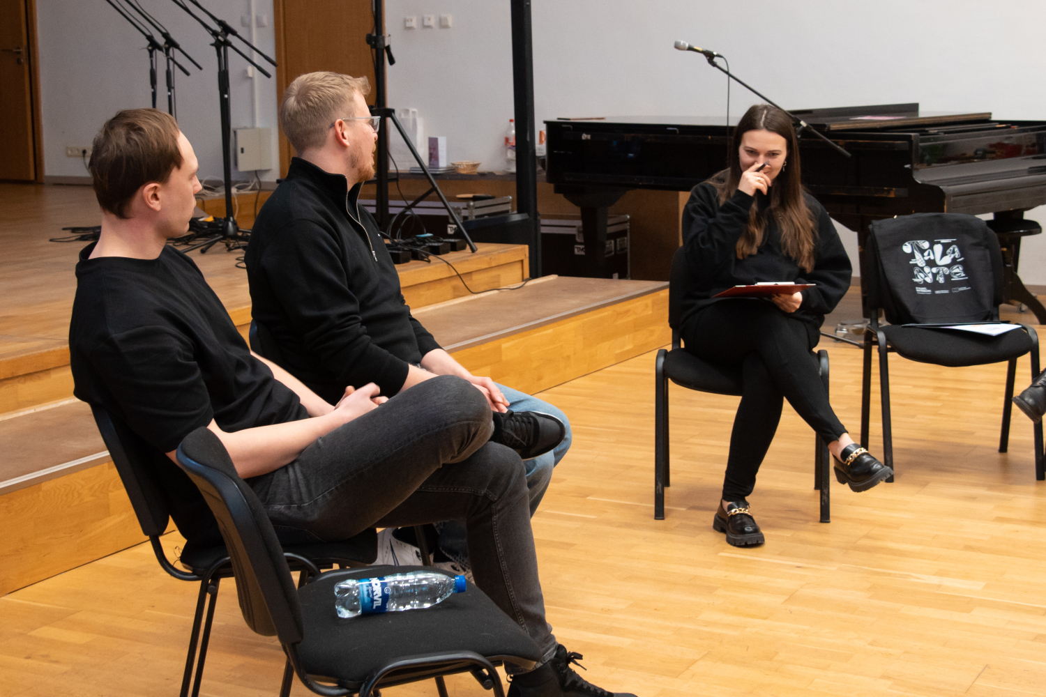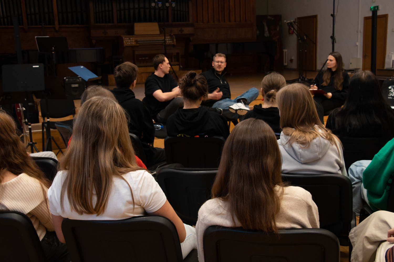 Vakaru turpinājām citādāk, nekā Fermātā ierasts, jo pēc uzdevumiem aicinājām klātesošos jauniešus un arī pedagogus uz Benča sarunām, kuras vadīja izglītības metodiķe Ilze Unzule. Dalībai sarunās piekrita trīs fantastiski un neticami iedvesmojoši JIRMS absolventi: Domeniks Slišāns, Mārcis Lipskis un Einārs Everss. Neizsakāmi pateicamies katram no sarunu varoņiem par dalīšanos savā skolas laika pieredzē, pārdomās par mūziķa karjeru, sajūtās un emocijās par savas dzīves laikā pieredzēto - uz skatuves un ne tikai. Paldies par iedvesmu turpmākajam darbam!