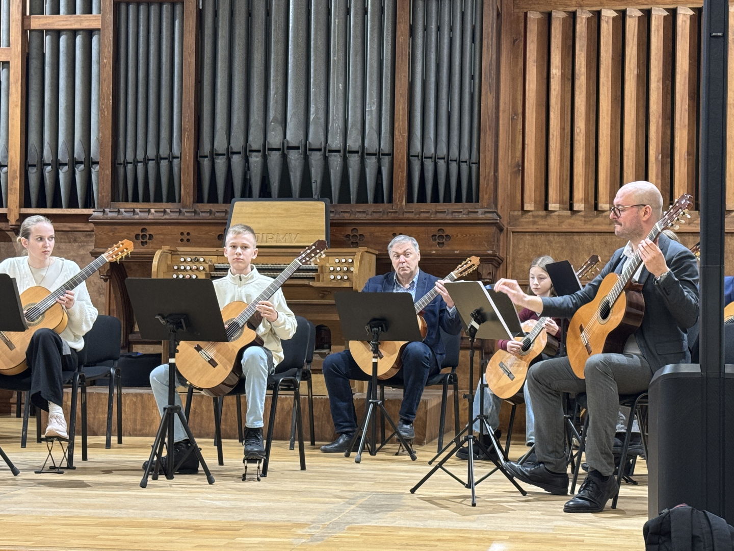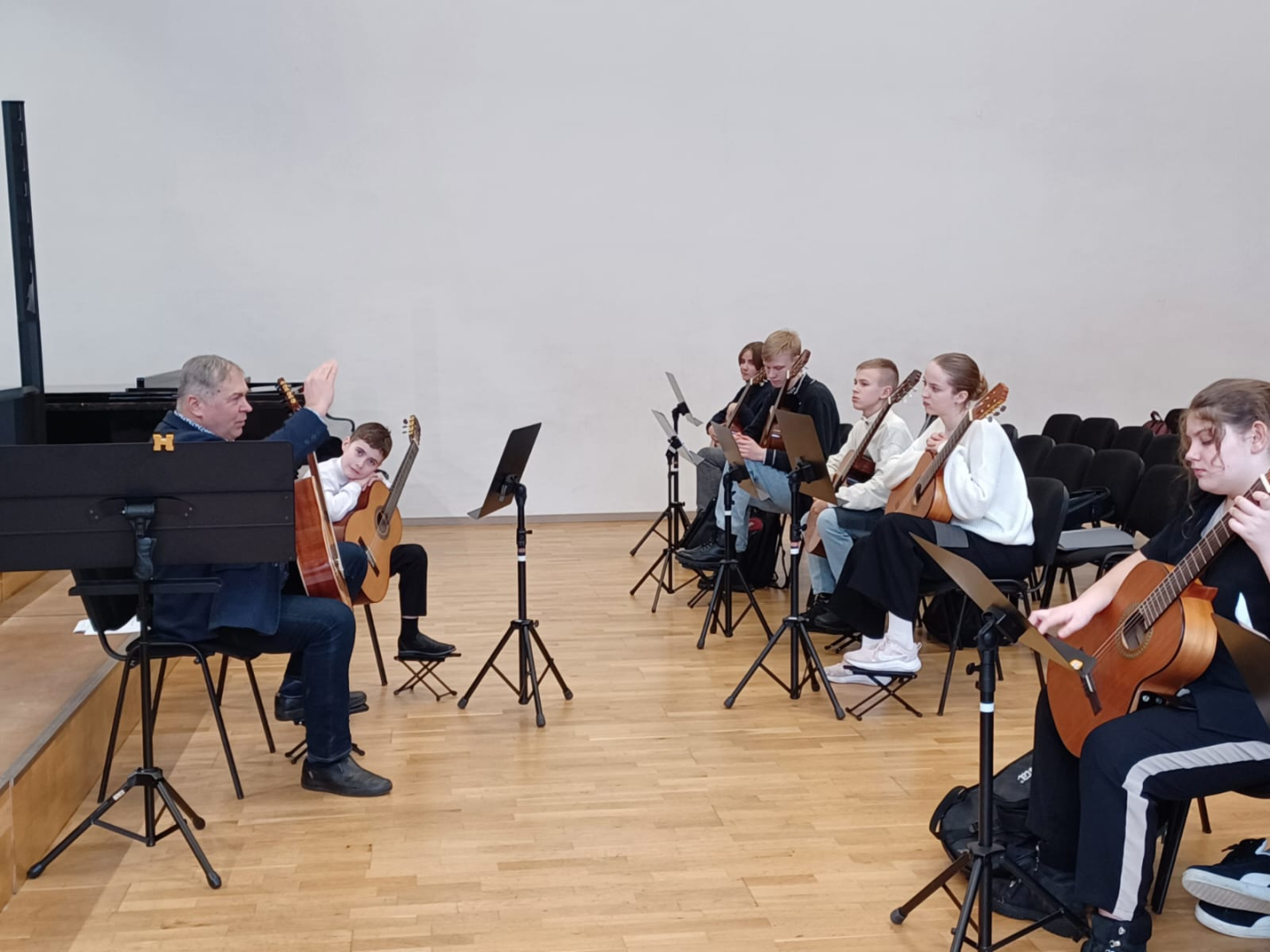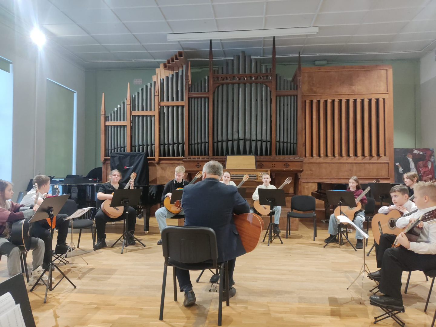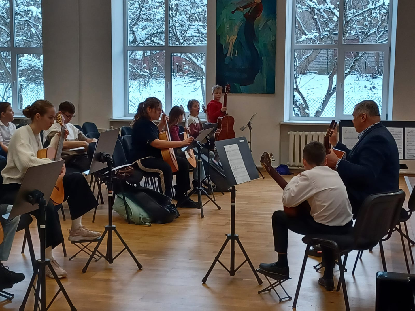 7.februārī MIKC LMMV JIRMS norisinājās ģitārista Andra Grīnberga gammu meistarklase, kuras laikā dalībnieki (pedagogi un izglītojamie) apguva arī ģitāristu orķestra saspēles pamatprincipus. Kopumā meistarklasi apmeklēja 21 dalībnieks. Liels paldies pedagogiem un īpaši jaunajiem ģitāristiem, kuri aktīvi iesaistījās un nenobijās no jaunā, vēl līdz galam nezināmā. Pateicamies Andrim Grīnbergam par dalīšanos ar savām metodēm, ieguldīto darbu, enerģiju un pozitīvismu! Pēc meistarklases visiem klātesošajiem bija iespēja piedzīvot meistarklases vadītāja ģitāras spēles koncertu, kurā piedalījās arī mūsu pašu pedagogs Kristaps Višs un meistarklases dalībnieki.