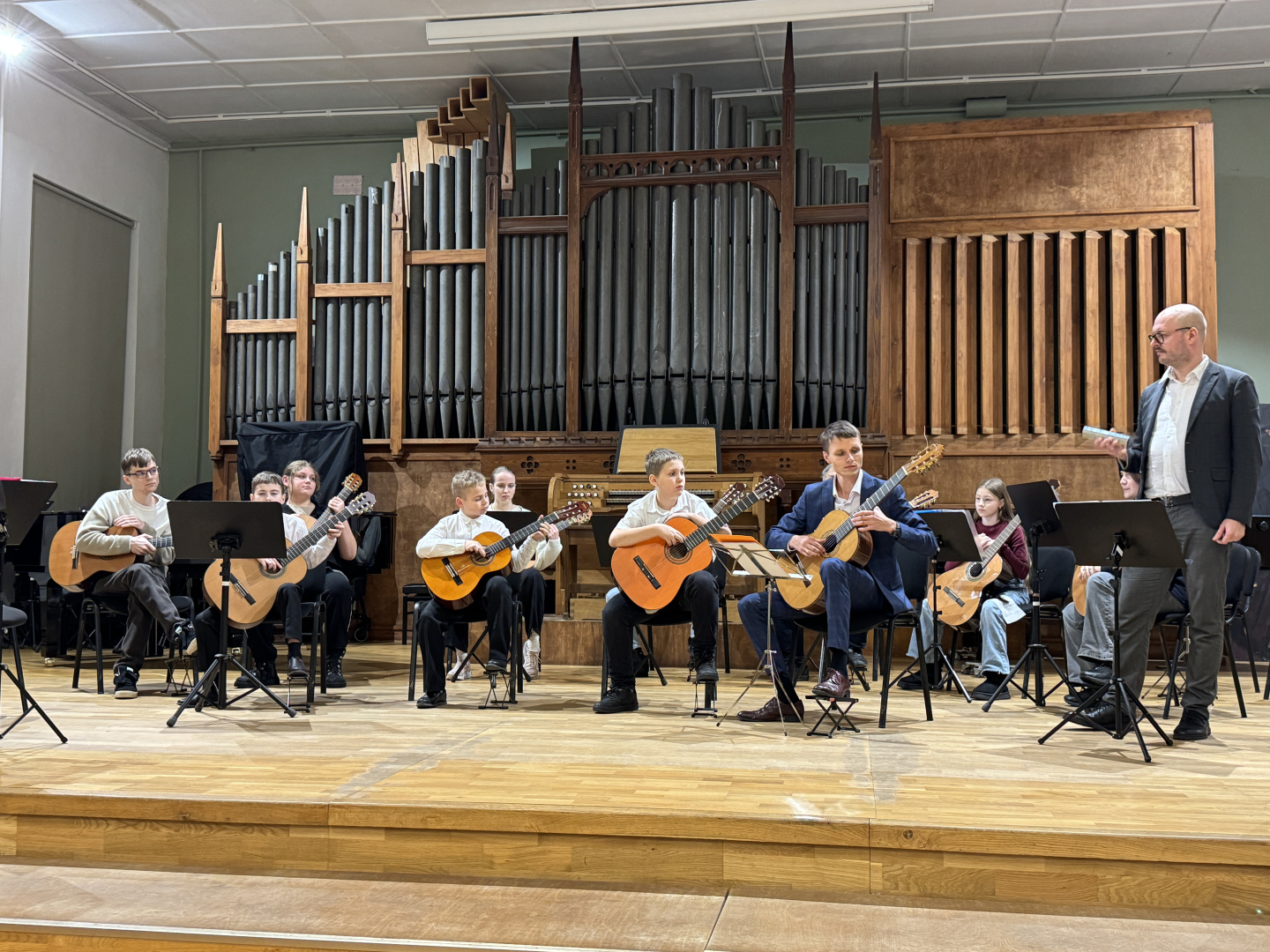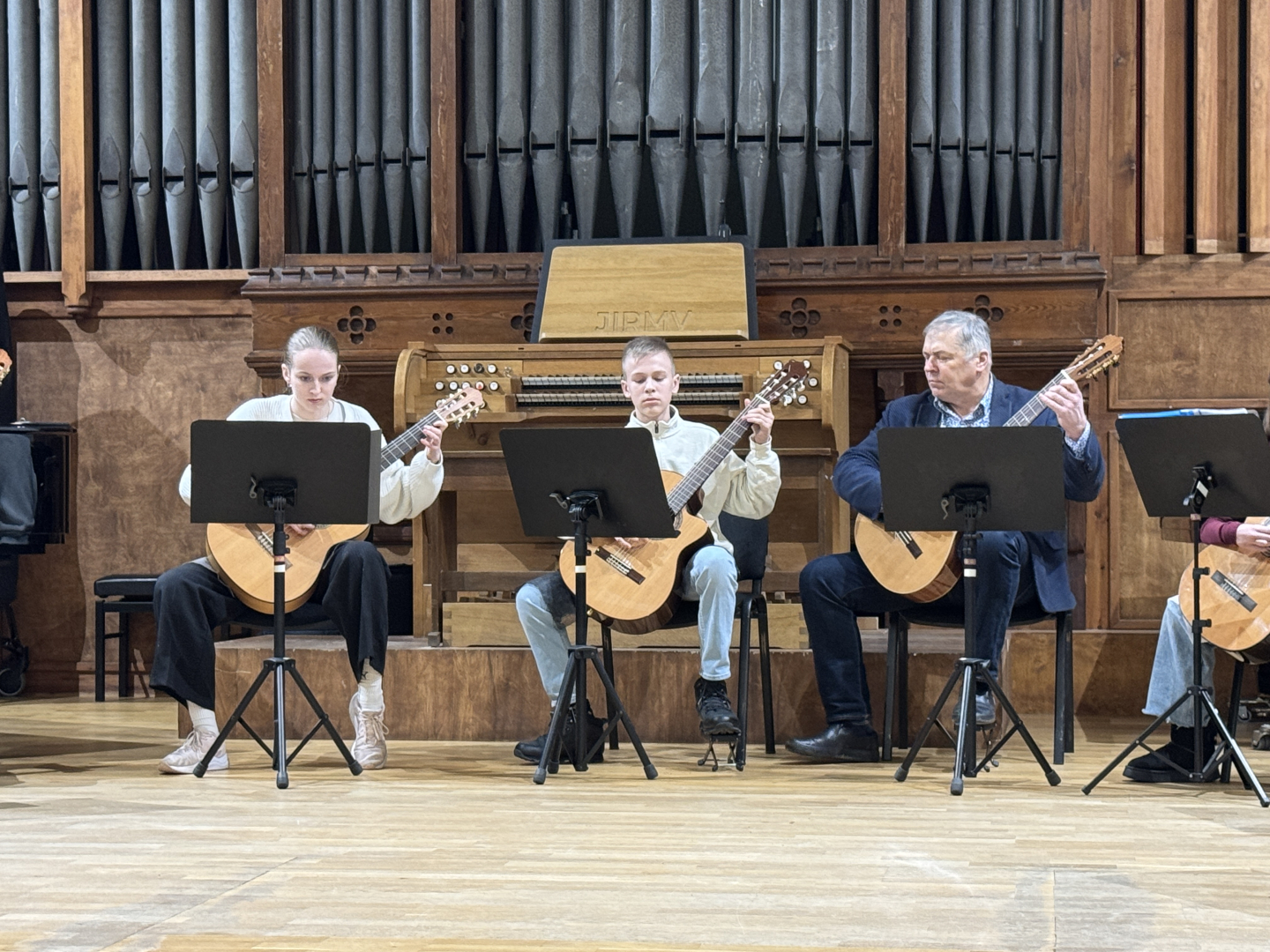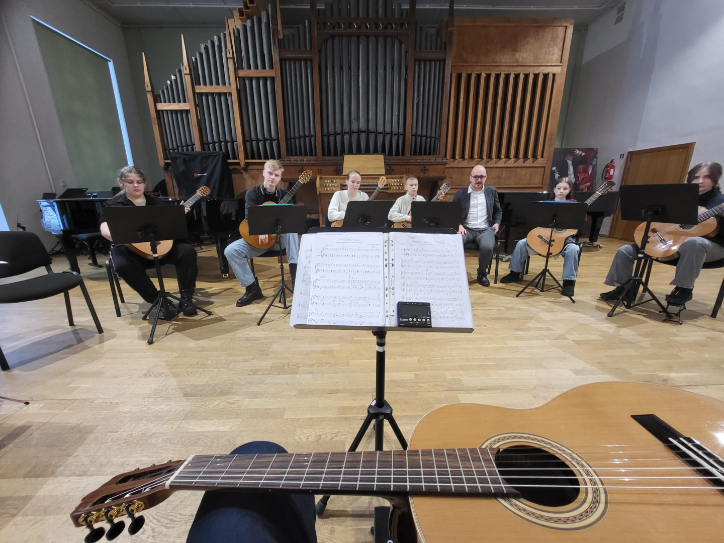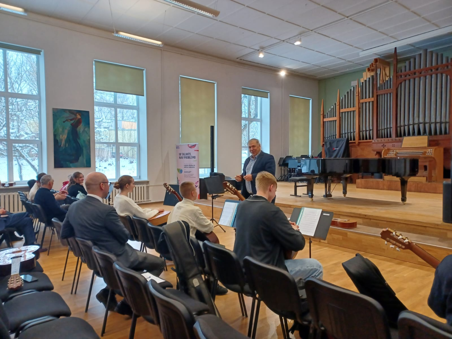 7.februārī MIKC LMMV JIRMS norisinājās ģitārista Andra Grīnberga gammu meistarklase, kuras laikā dalībnieki (pedagogi un izglītojamie) apguva arī ģitāristu orķestra saspēles pamatprincipus. Kopumā meistarklasi apmeklēja 21 dalībnieks. Liels paldies pedagogiem un īpaši jaunajiem ģitāristiem, kuri aktīvi iesaistījās un nenobijās no jaunā, vēl līdz galam nezināmā. Pateicamies Andrim Grīnbergam par dalīšanos ar savām metodēm, ieguldīto darbu, enerģiju un pozitīvismu! Pēc meistarklases visiem klātesošajiem bija iespēja piedzīvot meistarklases vadītāja ģitāras spēles koncertu, kurā piedalījās arī mūsu pašu pedagogs Kristaps Višs un meistarklases dalībnieki.