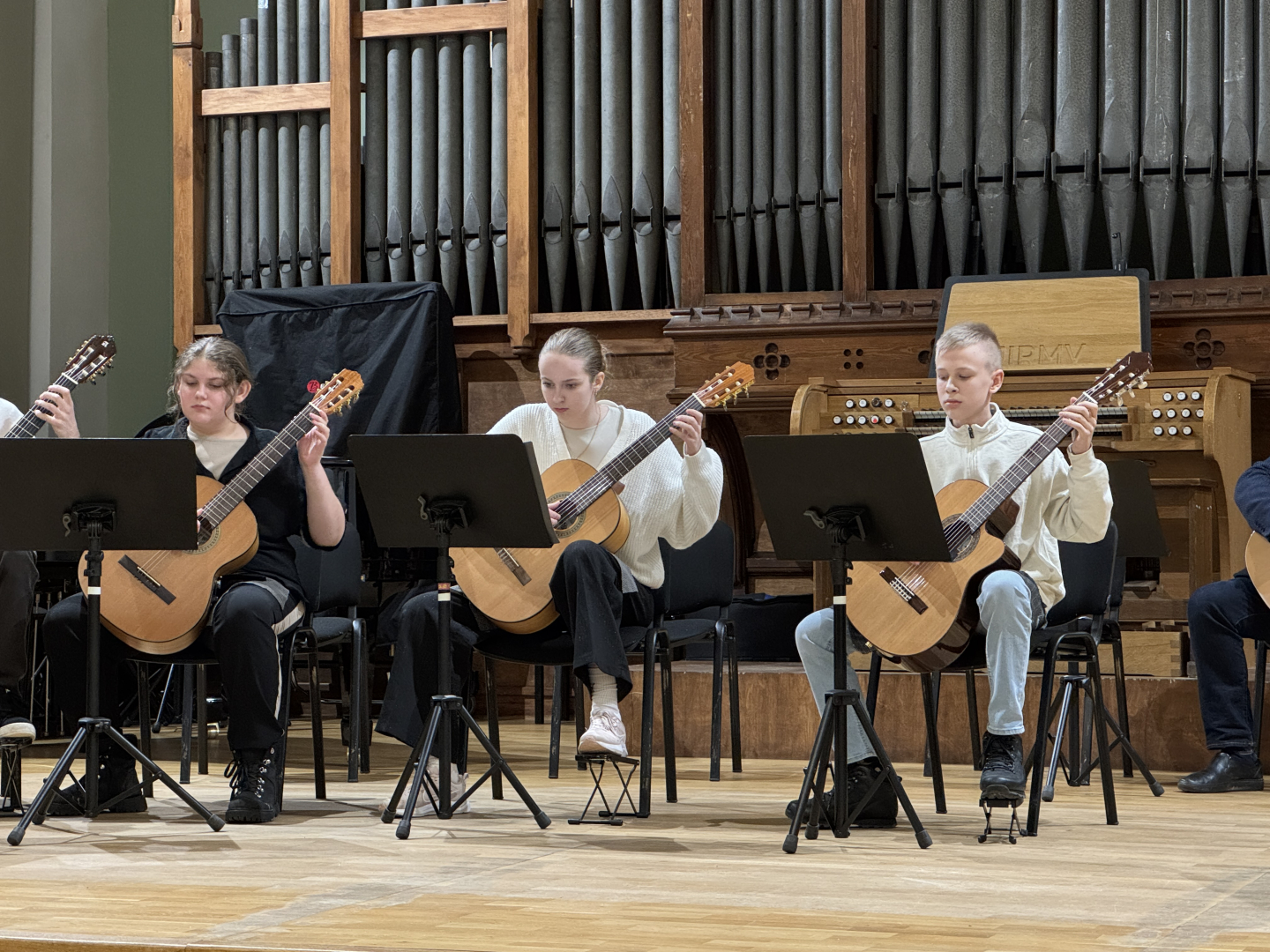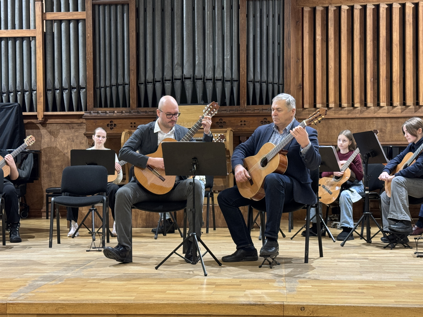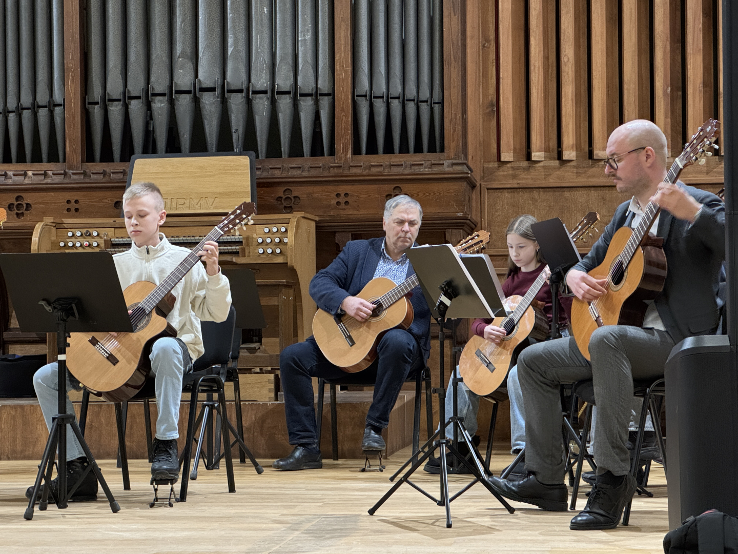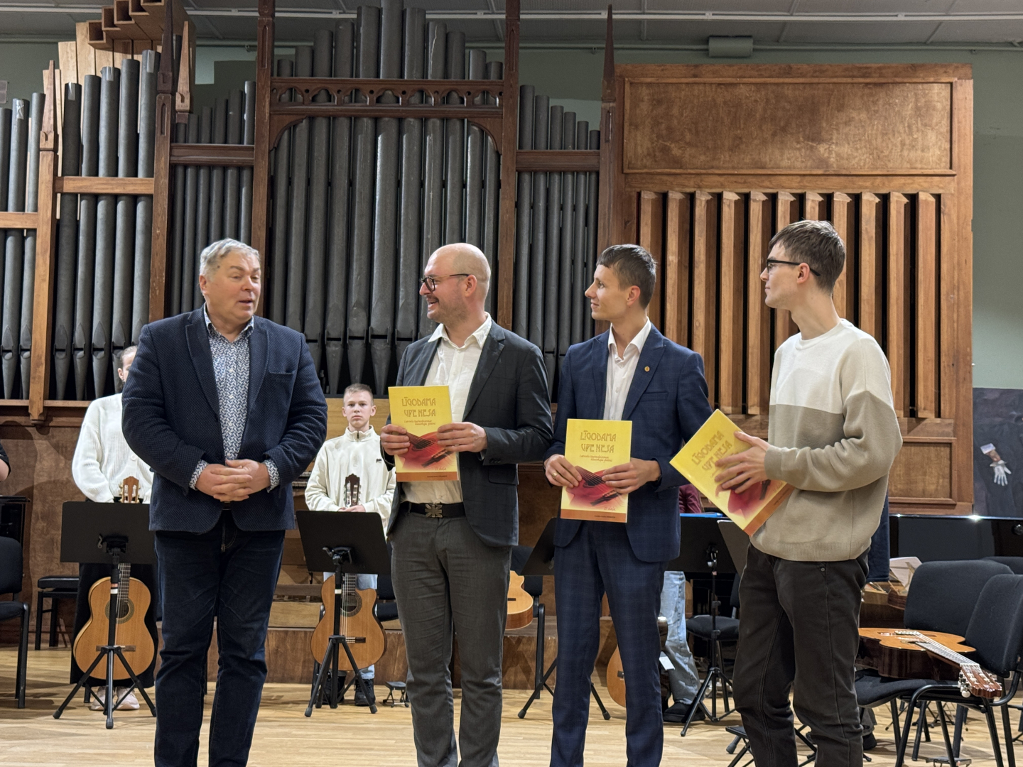 7.februārī MIKC LMMV JIRMS norisinājās ģitārista Andra Grīnberga gammu meistarklase, kuras laikā dalībnieki (pedagogi un izglītojamie) apguva arī ģitāristu orķestra saspēles pamatprincipus. Kopumā meistarklasi apmeklēja 21 dalībnieks. Liels paldies pedagogiem un īpaši jaunajiem ģitāristiem, kuri aktīvi iesaistījās un nenobijās no jaunā, vēl līdz galam nezināmā. Pateicamies Andrim Grīnbergam par dalīšanos ar savām metodēm, ieguldīto darbu, enerģiju un pozitīvismu! Pēc meistarklases visiem klātesošajiem bija iespēja piedzīvot meistarklases vadītāja ģitāras spēles koncertu, kurā piedalījās arī mūsu pašu pedagogs Kristaps Višs un meistarklases dalībnieki.