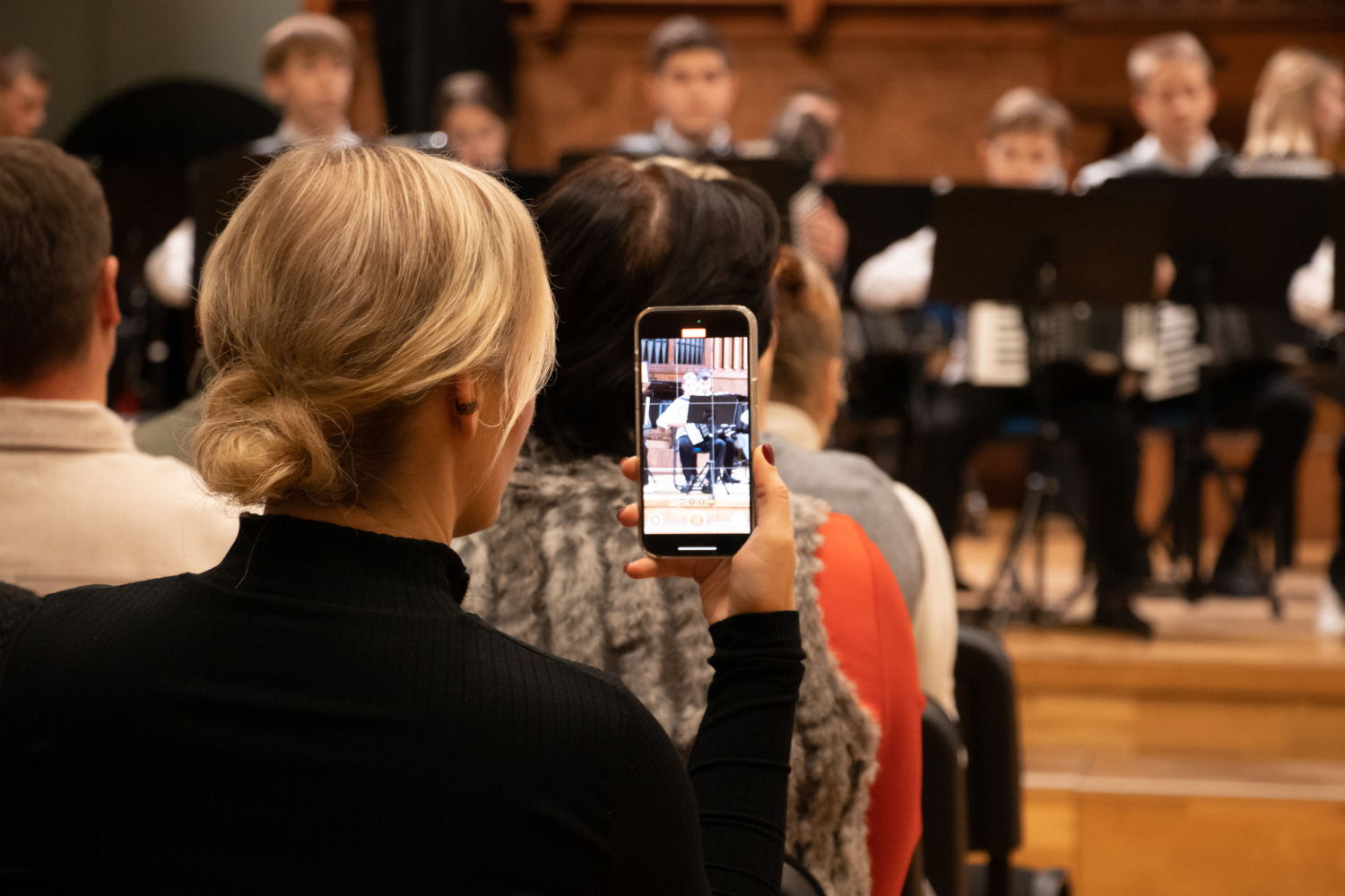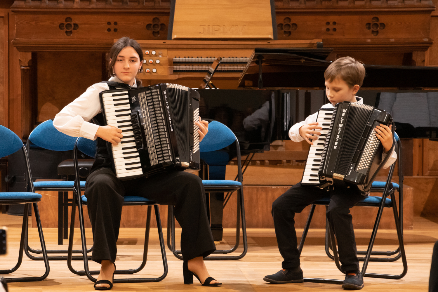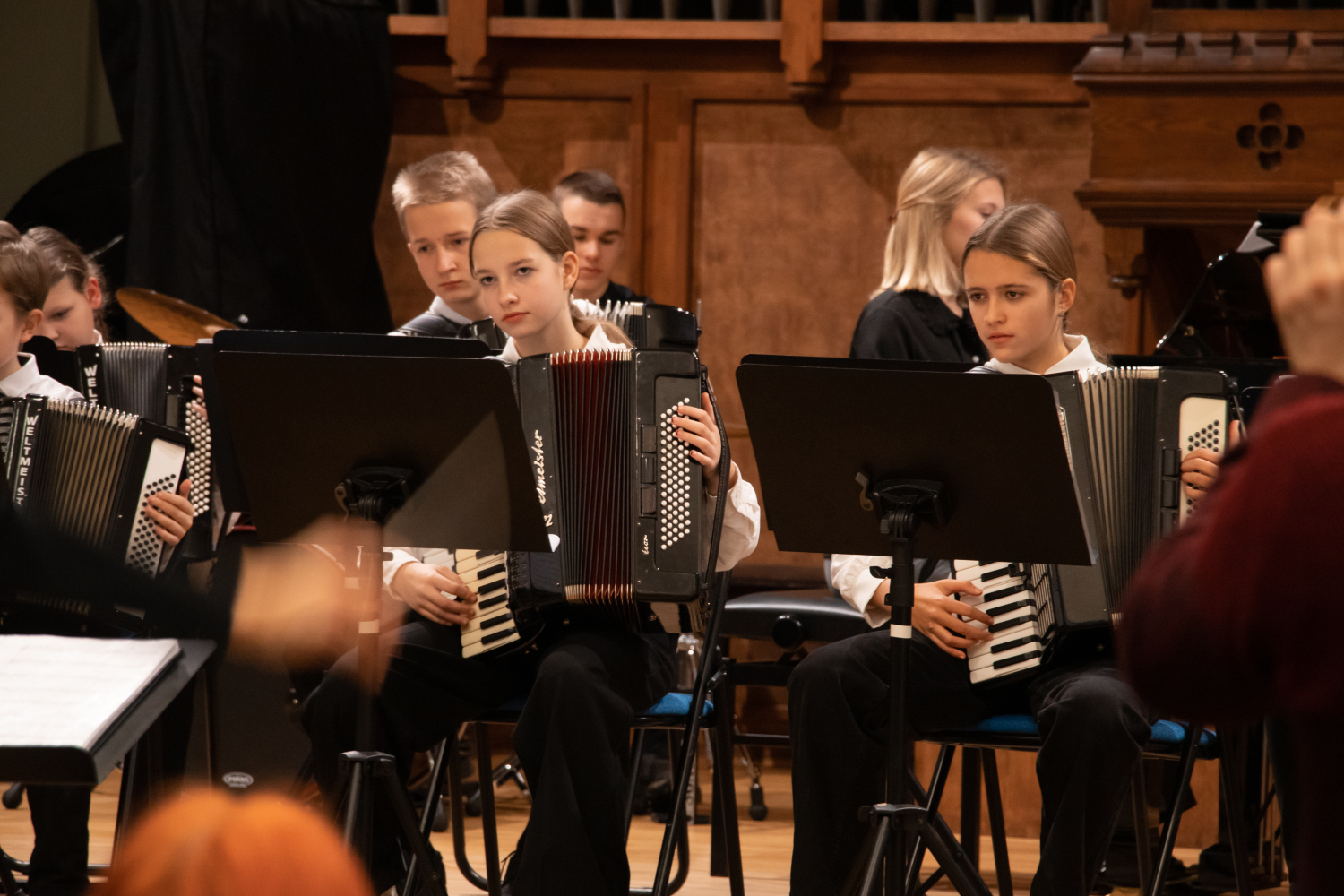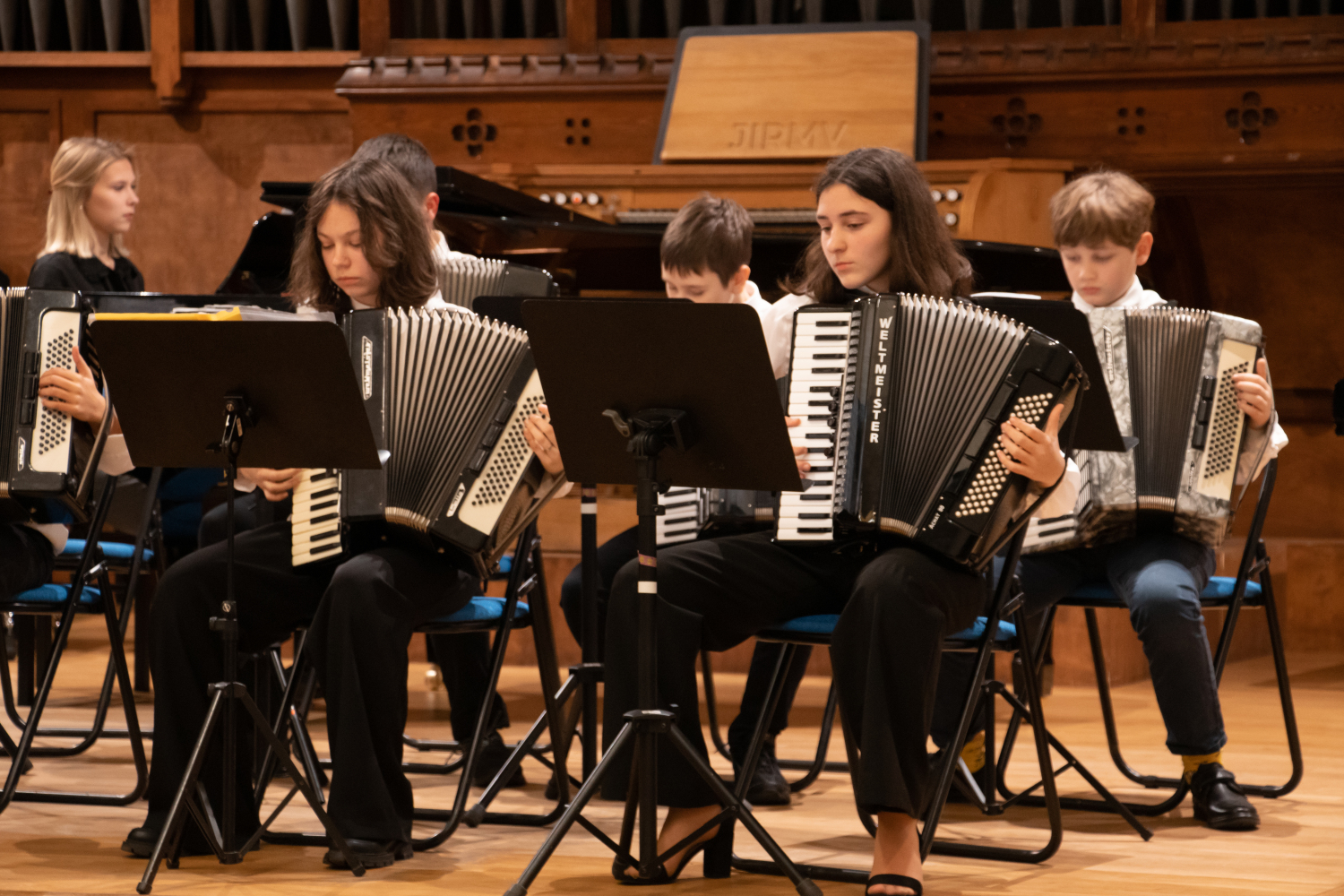 2024.gada 11.decembrī Mākslu izglītības kompetences centra "Latgales Mūzikas un mākslas vidusskola" struktūrvienības, Jāņa Ivanova Rēzeknes mūzikas skolas (JIRMS), izglītības programmas "Taustiņinstrumentu spēle – Akordeona spēle" izglītojamie un pedagogi priecēja izglītojamo vecākus Ziemassvētku ieskaņu koncertā JIRMS Lielajā zālē.