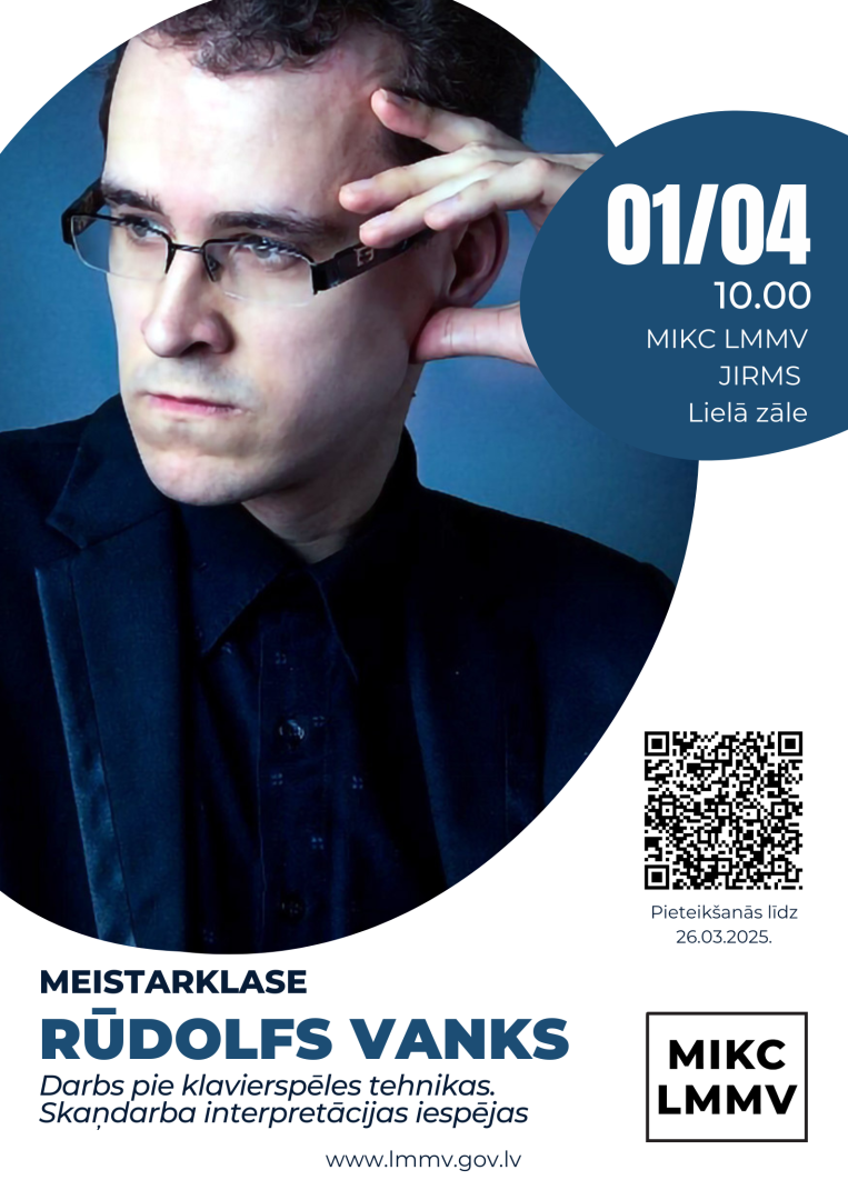 MIKC LMMV Jāņa Ivanova Rēzeknes mūzikas skola 1.aprīlī aicina uz pianista Rūdolfa Vanka meistarklasi “Darbs pie klavierspēles tehnikas. Skaņdarba interpretācijas iespējas”.