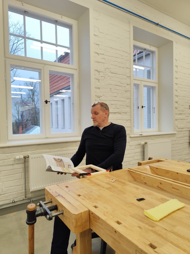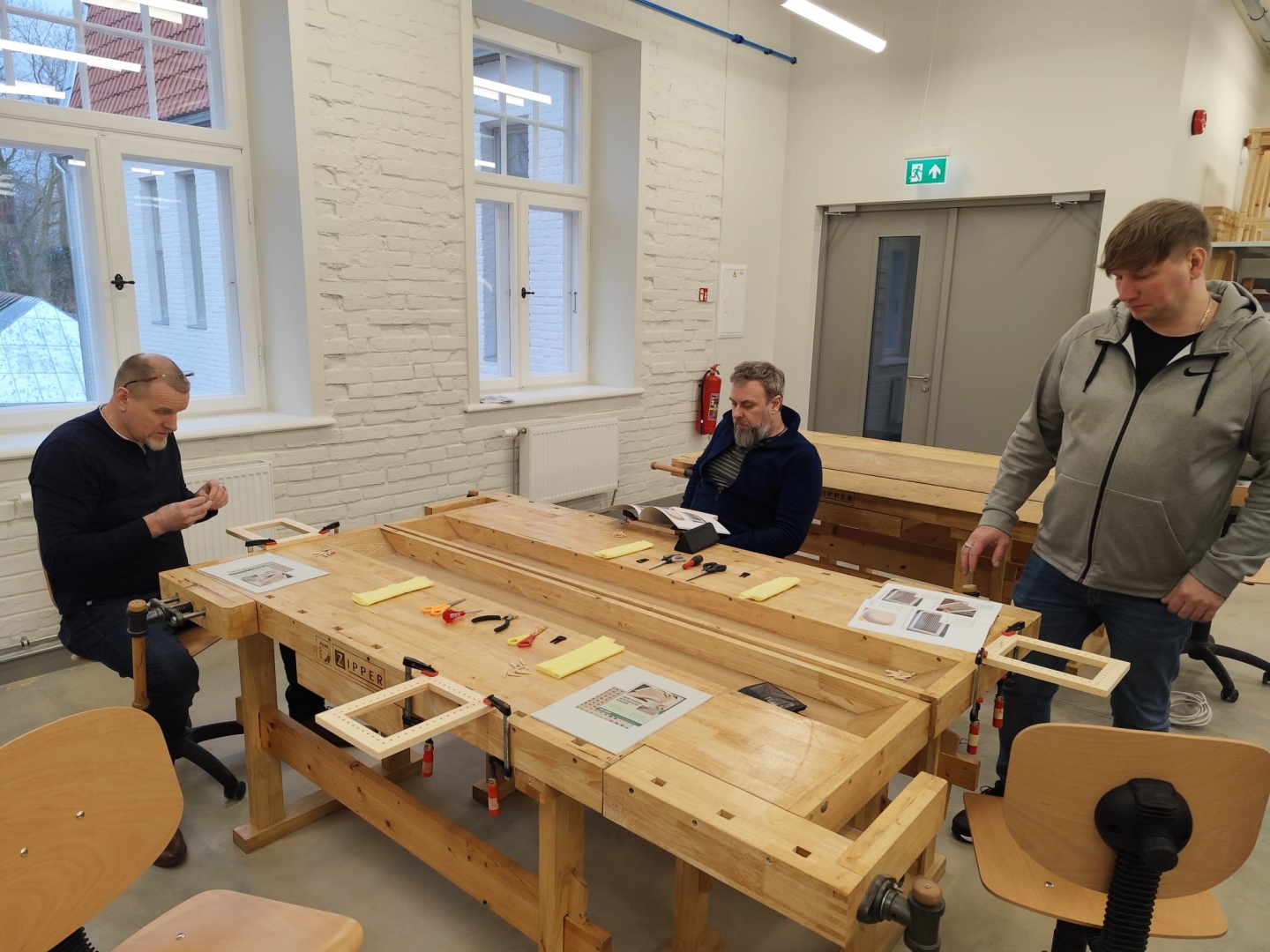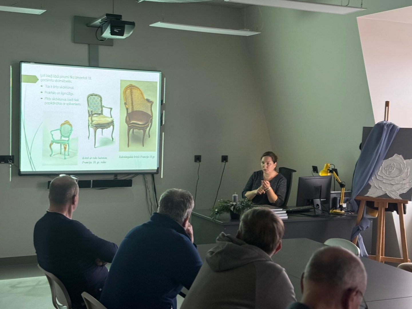 Seminārā mūsu pedagogiem bija iespēja apskatīt KTTT Tehnoloģiju centra restaurācijas telpas. Rundāles pils muzeja zinātniskās restaurācijas nodaļas galvenās speciālistes, restauratores Baibas Leitlantes vadībā pedagogi apguva rotangpalmas klūdziņu pinuma veidošanas teoriju, kā arī šīs jau kopš 1700.gadiem Francijā, krēslu veidošanā izmantotās, tradicionālās tehnikas praktikumu.
