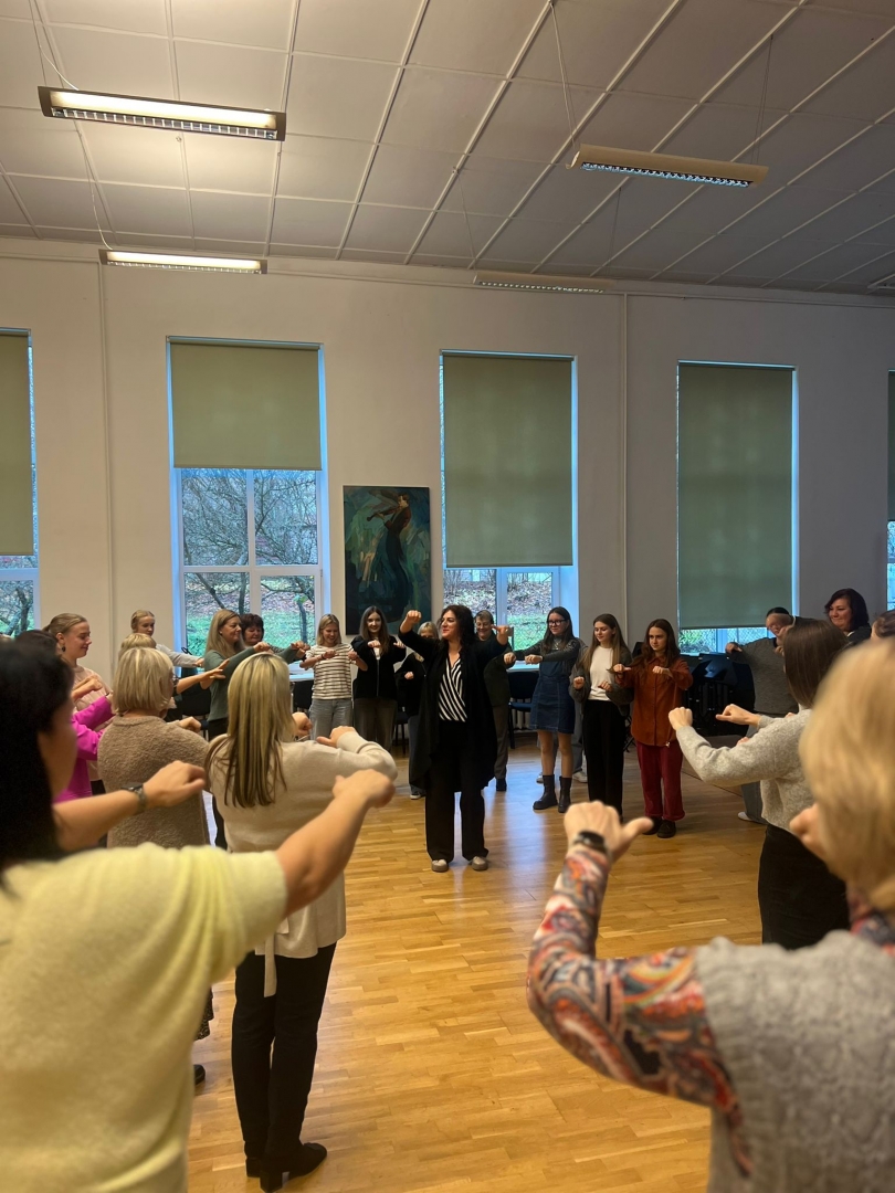 Meistarklasē piedalījās 20 MIKC LMMV Meiteņu kora dalībnieces, kā arī gandrīz 40 pedagogi no mūsu skolas, reģiona un pat tālākām Latvijas pilsētām. Pateicamies meistarklašu vadītājām par dalīšanos ar savu pieredzi, padomiem, teorētiskajām zināšanām, kā arī praktiskajiem piemēriem darbam ar kori. Šī meistarklase bija patiesi iedvesmojoša!
