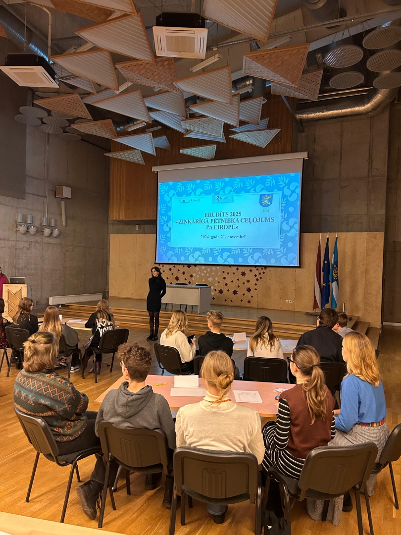 2024.gada 21.novembrī Austrumlatvijas radošo pakalpojumu centrā “Zeimuļs” pulcējās Rēzeknes valstspilsētas vispārizglītojošo un profesionālo mācību iestāžu audzēkņi, lai piedalītos konkursa “Erudīts - 2025” pirmajā sezonas spēlē. Dalībai “Erudīts - 2025” tika pieteiktas astoņas komandas. Mākslu izglītības kompetences centru "Latgales Mūzikas un mākslas vidusskola" pārstāv komanda "Vivo", kuras stastāvā pirmajā spēlē bija pieci izglītojamie - Antra Toporkova, Bernadeta Balode, Mareks Rosickis, Marta Šišlova un Anna Guba. Apsveicam komandu "Vivo" ar pirmajā spēlē iegūto 3.vietu!
