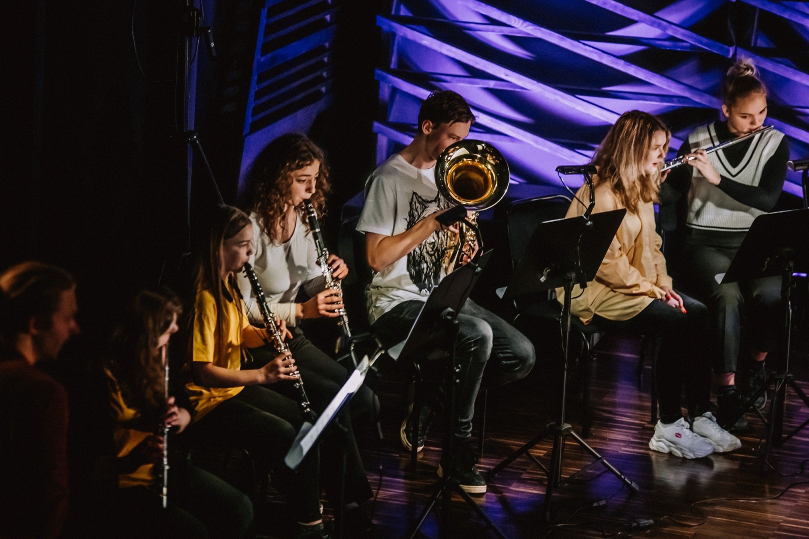 PRIEKŠMETI, KURUS BŪS IESPĒJA APGŪT: Flautas spēle, klarnetes spēle, saksofona spēle, fagota spēle, trompetes spēle, eifonija spēle, trombona spēle, tubas spēle, sitaminstrumentu spēle, ansamblis, orķestris, diriģēšana, darbs ar orķestri, pedagoģiskā prakse, itāļu un franču valoda.